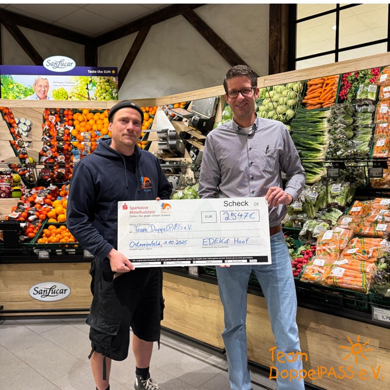 Das Ergebnis: Unglaubliche 2.547 Euro kamen so zusammen – ein Betrag, der uns sprachlos macht und unglaublich dankbar zurücklässt. Hendrik Hoof überreichte uns die Spende persönlich – wie immer mit einem offenen Ohr, ehrlichem Interesse und echtem Engagement. Dass EDEKA Hoof zu unseren treuesten Unterstützern gehört, ist für uns alles andere als selbstverständlich. Es ist einfach unglaublich, dass wir auf solch langjährige Partner zählen dürfen. Ob beim Adventskalenderverkauf, bei der Sommer-Tombola, bei Spendenaktionen oder bei spontanen Anliegen – EDEKA Hoof ist immer zur Stelle, wenn wir Hilfe brauchen. Das ist keine Floskel, sondern echte, gelebte Unterstützung.