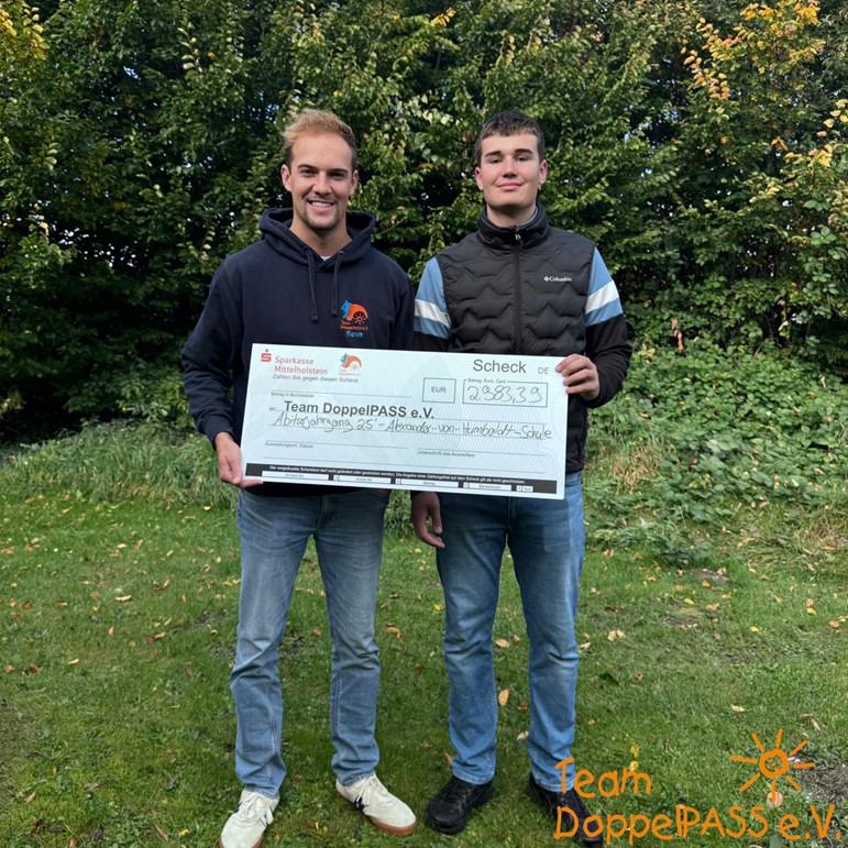 Anstatt das übrige Geld einfach zu behalten, entschied sich der Jahrgang, es einem guten Zweck zu widmen – und wählte uns, das Team DoppelPASS, als Spendenempfänger.